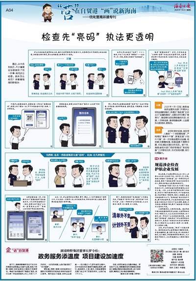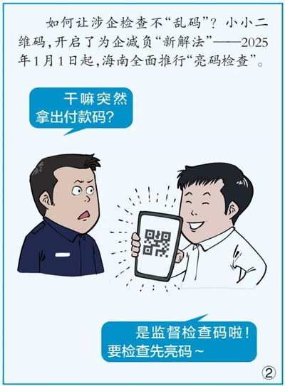 助企发展,不仅要把事办在企业心坎上,还要让企业把心放在肚子里。2025年1月1日起,海南全面推行“亮码检查”,进一步规范涉企行政检查,彰显了海南政府部门依法行政的坚定决心,释放出护航企业发展的积极信号。