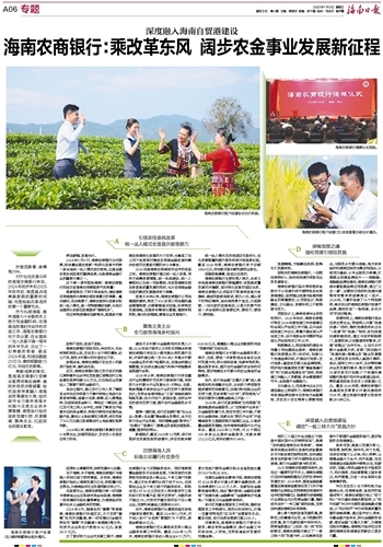 海南农商银行乡村振兴金融部负责人表示,当前,要进一步紧密结合全省农业农村发展方向,深化结构改革、创新体制机制、健全服务体系,提升农村金融的安全性和可得性,更好地满足乡村振兴和农业强省的金融需求。