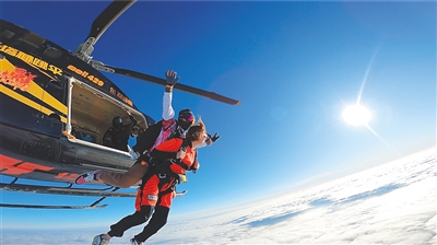 游客在三亚体验直升机高空跳伞。 受访者供图