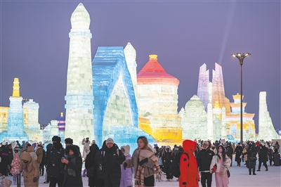 在这座冰雪之城,冰灯、冰雕、冰爬犁、抽冰嘎、毛皮板滑雪等老式技艺焕发新生机,“雪国列车”、冰雪音乐会、“万人雪地蹦迪”等新业态、新场景为冰雪文化注入新活力。哈尔滨冰雪大世界、中央大街、太阳岛雪博会、极地公园、东北虎林园、伏尔加庄园等热门景点被游客纷纷“种草”。