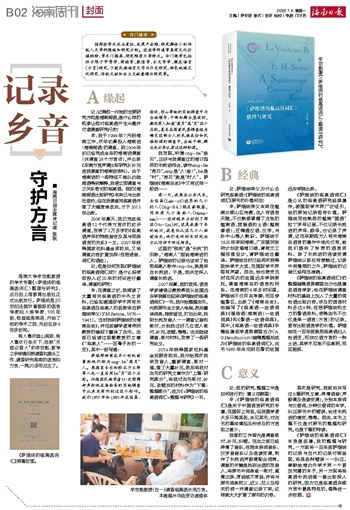 ■ 海南日报全媒体记者 陈耿海南大学辛世彪教授的学术专著《<萨维纳的临高语词汇>整理与研究》,近日由上海教育出版社正式出版发行。萨维纳是20世纪法国饮誉国际的语言学家和人类学家,100年前,他登陆海南岛,开始了他的学术之旅,先后在琼4年多时间。