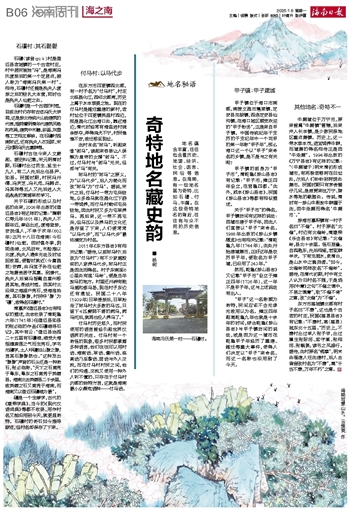 地名蕴含丰富,往往包含着历史、地理、经济、社会、语言、民俗等信息。在海南,有一些地名甚为奇特,比如石石矍、付马、牛漏。在这些奇特地名的背后,往往有与众不同的历史信息。