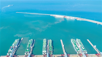 图为近日航拍的海口新海港汽车客货滚装码头。