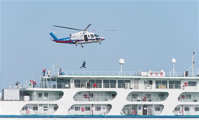 本报海口1月7日讯 (海南日报全媒体记者曹马志)1月7日,2025年春运琼州海峡客滚船海上大规模人员救助综合演练在海口秀英港举行,系近年来国内组织的参演人数最多、投入设备最新、救助方式最全的同类综合演练。演练模拟设置客滚船“海祥”轮从徐闻海安新港开往海口秀英港途中,与西行散货船“东方”轮发生碰撞。接到“海祥”轮险情报警后,海南省海上搜救中心立即启动预案,迅速协调两岸多方应急力量展开“海陆空”联合救援,同步开展空中伤员转运、落水人员搜寻救助、海上大规模人员转移和船舶消防灭火等4个科目应急处置和救助工作。模拟受伤旅客被转移至移动医疗方舱进行救治,3名落水人员被成功救起,358名遇险旅客和船员被安全转移上岸,演练取得圆满成功。