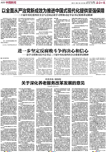 2024年,以习近平同志为核心的党中央坚持以党的自我革命引领社会革命,一以贯之推进全面从严治党,取得新的进展和成效。