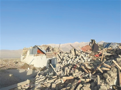 1月7日在日喀则市定日县长所乡通来村拍摄的房屋倒塌情况。 新华社发