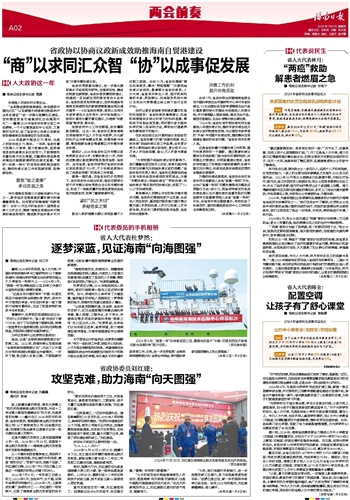 党委政府中心工作在哪里,政协履职就在哪里。过去一年,省政协还聚焦海南自贸港海洋产业人才引进与培养、石化新材料产业与核电耦合发展、非遗传承与传播、清洁能源岛建设等课题召开专题协商会协商。