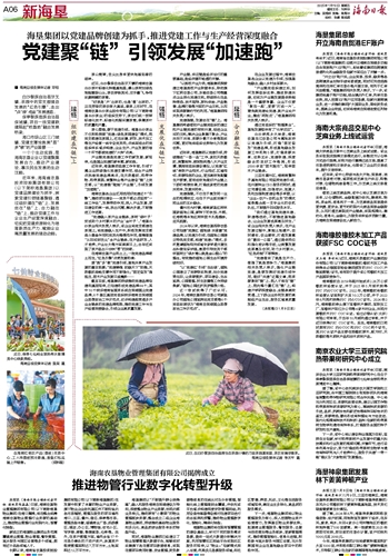 海垦集团以“不断提升群众获得感”,融入和服务海南自贸港建设为导向,深度整合物业产业资源,协同内部业务单元,推动原有“小散弱”的物业管理板块资源,整合成立二级企业海垦物业集团,持续推动基础物业服务向多元化、高品质综合服务体系的转型升级。