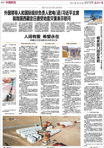 “深刻认识到灾区地处高海拔区域的特殊情况,把受灾群众御寒保暖工作摆在更加突出位置。”郝涛说。