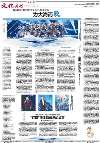此外,《南海多辽阔》壮阔雄浑,《这里是我的海》置地铿锵,《孩子》深情倾吐,《老渔夫》饱含沧桑与恬淡,《遇见爱的三沙》温暖动人,《南海渔歌》悠扬纯净,《五百年梦醒》跌宕凄美……一批又一批以海洋为主题的精品力作不断涌现,社会影响广泛。