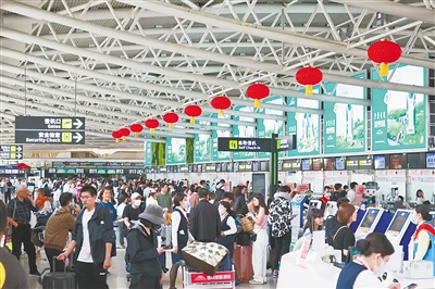 三亚凤凰国际机场航站楼内即将出发的旅客。 (海南机场集团供图)