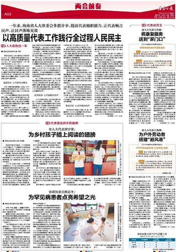 在实践中,人大代表的主体作用不断增强。2024年1月27日,省七届人大三次会议票决选出10项2024年海南省级民生实事项目。这也标志着海南成为全国首个在省级层面实施民生实事项目人大代表票决制的省份。
