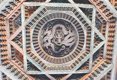 先农坛拜殿内的隆福寺毗卢殿明间藻井。 新华社发