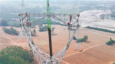 海南五百千伏主网架工程线路施工现场。 伍绍怿 摄