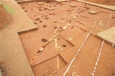 珠崖岭城址考古发现的排水沟和道路。