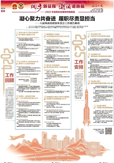 2025年,省政协将坚持以习近平新时代中国特色社会主义思想为指导,坚持党的领导、统一战线、协商民主有机结合,更好发挥专门协商机构作用,锚定“一本三基四梁八柱”战略框架履职尽责,为新征程上奋力谱写中国式现代化海南篇章凝聚人心共识、汇聚智慧力量。