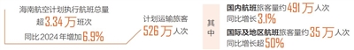 本报讯 (海南日报全媒体记者邵长春 通讯员耿卫星 杨帅)2025年春运将于1月14日开始至2月22日结束,为期40天。期间海南航空计划执行航班总量超3.34万班次,同比2024年增加6.9%;计划运输旅客526万人次,其中国内航班旅客量约491万人次,同比增长3.1%,国际及地区航班旅客量约35万人次,同比增长超50%。为确保2025年春运期间运输保障各项工作安全、平稳、有序,海南航空召开春运保障专题会,下发专项保障方案,从航班计划安排、可用运力、机组资源、地面保障等方面进行全面部署,全力确保春运期间航班运行安全平稳。