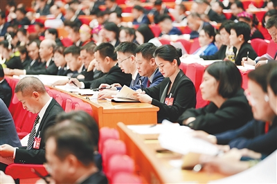 一月十四日,海南省第七届人民代表大会第四次会议在海口开幕,省人大代表认真听取大会报告。