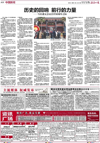 “遵义会议的鲜明特点是坚持真理、修正错误,确立党中央的正确领导,创造性地制定和实施符合中国革命特点的战略策略。这在今天仍然具有十分重要的意义。在前进道路上,要战胜各种风险挑战,必须实事求是、坚持真理,科学应变、主动求变,咬定目标、勇往直前,走好新时代的长征路。”习近平总书记深刻指出。