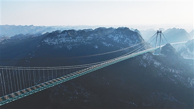 图为1月13日拍摄的贵州六安高速公路花江峡谷大桥。