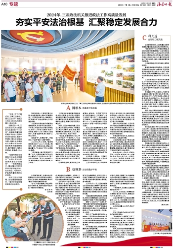 在“做实”上见行动,多项举措效果如何?吉阳区博后村、崖州区梅西村化解纠纷工作法,获评省新时代“枫桥经验”先进典型称号,持续讲好三亚“平安故事”。