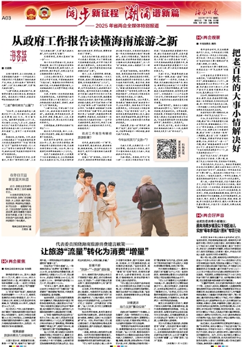 中国式现代化,民生为大。海南自贸港建设的出发点和落脚点,都是让老百姓过上好日子。而老百姓的“好日子”,就体现在一项项具体实在的“大事小情”上。透过政府工作报告中这一个个民生亮点、一组组民生数字,一项项民生措施,可感受到海南始终坚持以人民为中心的民生情怀。