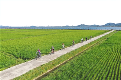 驴友在曲冲村骑行。