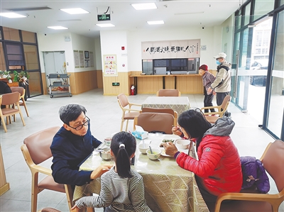 “朱姨、邢姨,我和你们坐一桌哦。”在附近一家银行上班的陈怡霖经常来食堂吃饭。对于年轻人来说,尽管无法享受老人就餐时可获得的3至16元补助,但这里16元的午餐还是比较实惠。更让陈怡霖喜欢的是,这里的菜谱由营养师配置,一周内每天菜谱不重样,并且食材比较新鲜。