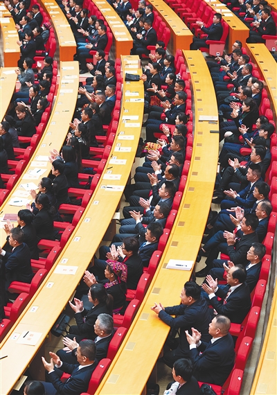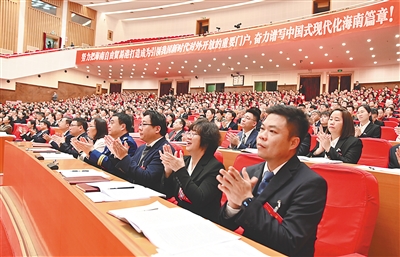 ⑧ 1月14日,省七届人大四次会议在省人大会堂开幕。图为代表听取政府工作报告时热烈鼓掌。海南日报全媒体记者 王凯 摄