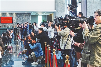 ④ 1月17日下午,省七届人大四次会议记者招待会(第三场)。图为媒体记者聚焦招待会。海南日报全媒体记者 封烁 摄