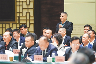① 1月15日上午,省政协八届三次会议举行界别联组会议。省政协委员桂金德(站立者)在会议上发言。海南日报全媒体记者 武威 摄
