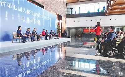 ③ 1月17日上午,省七届人大四次会议记者招待会(第二场)。图为记者在招待会上提问。