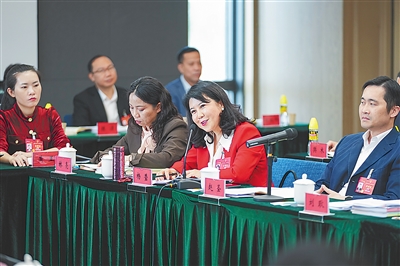 ② 1月15日,省人大代表分组审议政府工作报告。图为省人大代表杨莹(右二)发言。