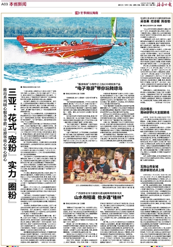 做好服务是提升旅游业整体质量的关键。据了解,三亚于去年7月推出了“文旅活动日历”平台,打造集活动日历表、活动资讯展示、活动预约提醒、活动分享互动、演唱会门票购买等于一体的大型活动一站式服务专栏,受到广大游客的好评和热捧。“2025年为三亚市‘旅游服务提升年’。我们计划推出‘轻松游三亚’行李托管服务,不断提升三亚旅游服务品质,提高游客满意度。”三亚市旅文局相关负责人说。