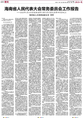 2025年是“十四五”规划收官之年,是自贸港封关运作之年。我们要深入贯彻党的二十大和二十届二中、三中全会精神,在省委坚强领导下,锚定“一本三基四梁八柱”战略框架,全面落实《中共海南省委关于深入学习贯彻习近平总书记在听取海南省委和省政府工作汇报时的重要讲话精神、努力把海南自由贸易港打造成为引领我国新时代对外开放的重要门户的决定》,紧紧围绕自贸港封关运作“一号工程”依法行使职权,创新代表工作,加强自身建设,全力推动新时代人大工作高质量发展。