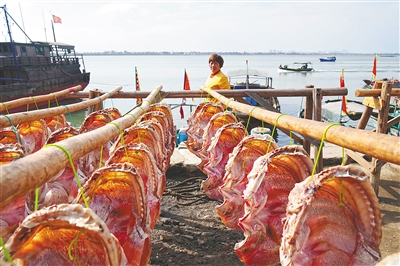 时下正是儋州红鱼生产销售的旺季,前来订购带鱼、红鱼等海产品的省内外客户络绎不绝。儋州出产的红鱼干是海南有名的特产,春节临近,儋州各地渔民正忙着腌制晾晒红鱼,筹备年货。海南日报全媒体记者 陈元才 摄