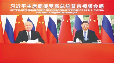 新华社北京1月21日电(记者董雪)1月21日下午,国家主席习近平在北京人民大会堂同俄罗斯总统普京举行视频会晤。两国元首互致新年祝福。习近平指出,再过几天就是中国春节,很高兴在这一辞旧迎新的时刻同总统先生视频会晤,祝愿新的一年中俄关系红红火火。普京表示,很高兴在新年伊始同习近平主席视频交流,祝愿习近平主席和中国人民新春快乐,万事如意!