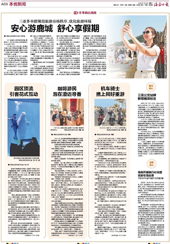 三亚市旅文局相关负责人表示,接下来,三亚将持续做好强化旅游市场监管、维护旅游市场秩序、保护消费者权益等工作,进一步提升旅游服务质量和游客满意度,擦亮“三亚放心游”招牌。