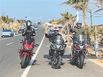 “我向往这片大海,更享受骑车时迎着阳光的放松时刻。”冯彬说,海岸线旁的大型风车、航天发射场以及农家美食都让他无比想念。