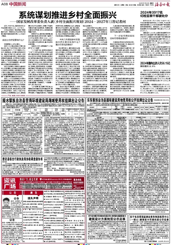 按照党中央、国务院决策部署,国家发展改革委会同有关部门编制了《乡村全面振兴规划(2024-2027年)》,系统谋划今后一段时间推进乡村全面振兴的主要目标、重点任务和政策举措。