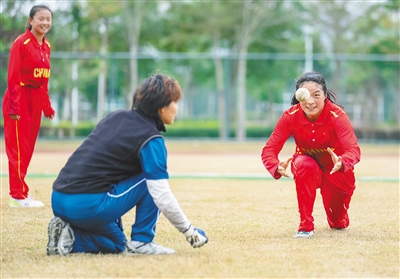 近日,在国家体育训练南方基地(海南白沙·综合)的运动场上,国家女子板球集训队的运动员专注地练习。