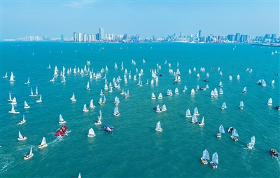 海口西海岸附近,国家帆船帆板队等多支队伍趁着蛇年春节前的好天气进行集训。