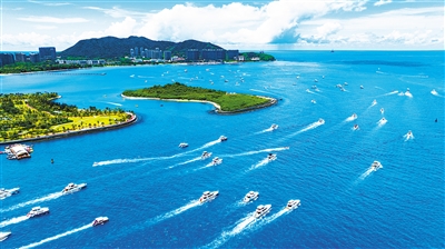 三亚湾众多游艇离港出海游玩。丰收 摄