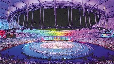 2024年11月22日晚,第十二届全国少数民族传统体育运动会开幕式在三亚市体育中心举行。丰收 摄