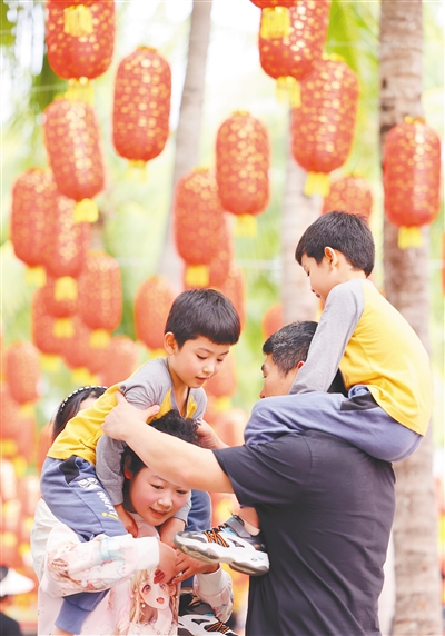 ① 近日,三亚景区张灯结彩,游客感受浓厚年味。
