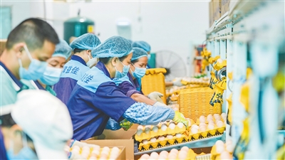 海南农垦海津益佳鸡蛋厂,工作人员在生产线上忙碌。