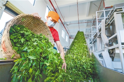 琼中黎族苗族自治县湾岭镇,海垦乌石茶业公司生产车间工人在忙着制茶。海南日报全媒体记者 袁琛 摄