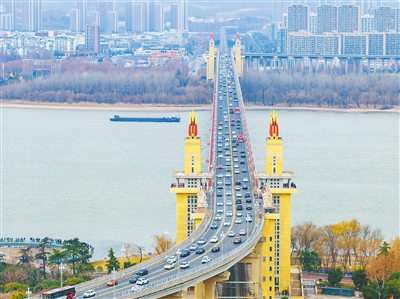 1月25日,春运迎来节前客流高峰。来自交通运输部数据显示,当日全社会跨区域人员流动量预计超2.7亿人次。图为1月25日拍摄的南京长江大桥上的车流。新华社发