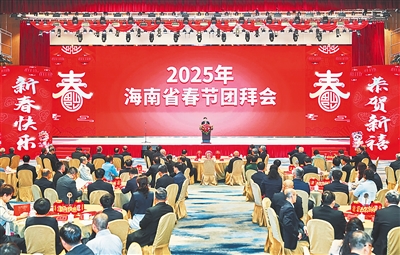 本报海口1月26日讯(海南日报全媒体记者李磊)蛇年春节即将到来,2025年海南省春节团拜会1月26日在海口举行,省委书记、省人大常委会主任冯飞致辞,代表省委、省人大常委会、省政府、省政协、省军区,向大家致以新春问候和美好祝愿。省委副书记、省长刘小明主持,省政协主席李荣灿等现职省领导,汪啸风、陈玉益、钟文、于迅等退休正省级老同志出席。冯飞在致辞中说,2024年海南大事要事喜事多,特别是习近平总书记来海南听取省委和省政府工作汇报并发表重要讲话,让我们深受鼓舞、信心倍增。一年来,海南牢记嘱托、勇毅前行,扎实开展党纪学习教育,持续深化作风能力建设,推动以习近平同志为核心的党中央决策部署落地见效;凝心聚力、只争朝夕,全力推进封关运作准备,任务、项目、压力测试“三张清单”顺利推进,自由贸易港建设成型起势;迎难而上、拼搏苦干,四大主导产业支撑作用不断增强,“三篇消费回流文章”效果显现,新质生产力重要实践地建设稳步起步,高质量发展基础更牢、动力更足、前景更可预期;千方百计、用心用情,着力解决群众急难愁盼问题,年度十大民生实事全部完成,持续推动在家门口就好业、上好学、看好病,脱贫人口零返贫,生态环境全国最好,社会治安状况处于历史最好水平。这些成绩的取得殊为不易、令人鼓舞,借此机会,向全省广大干部群众,向各行各业、社会各界、国内国际的海南自由贸易港关心者、支持者、建设者致以衷心感谢和崇高敬意。