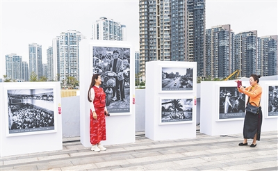 1月26日,年华·海口City walk主题摄影作品展在海口天空之山广场开展,此次展览以独特的视角和细腻的镜头语言,向市民游客展示海口的变迁与风采。本次展览共展出摄影作品110幅,将持续至3月底。图为市民游客在拍摄打卡照。文/海南日报全媒体记者 邓海宁 图/海南日报全媒体记者 宋国强
